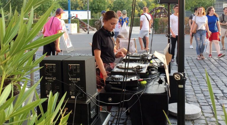 The area in front of Lola Montez’ beautiful location at Honsellbrücke in Frankfurt was our home for the day and we invited a slab of friends and favorites from Frankfurt and around to join the fun and to play music for our listeners and visitors.